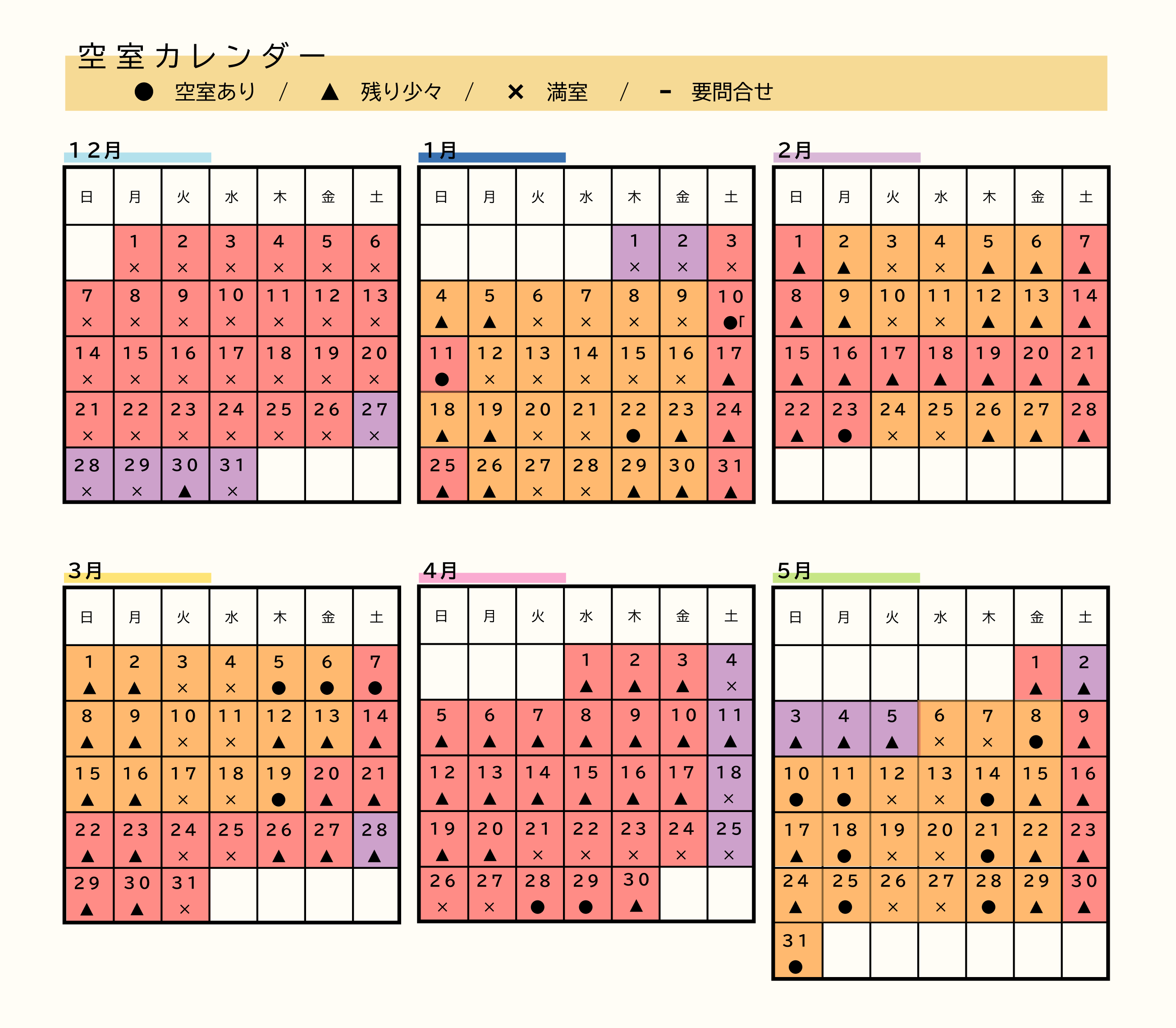 | Change of charge classification and amount | Please understand that the price classification and amount in the calendar may change depending on the situation and accommodation plan. |