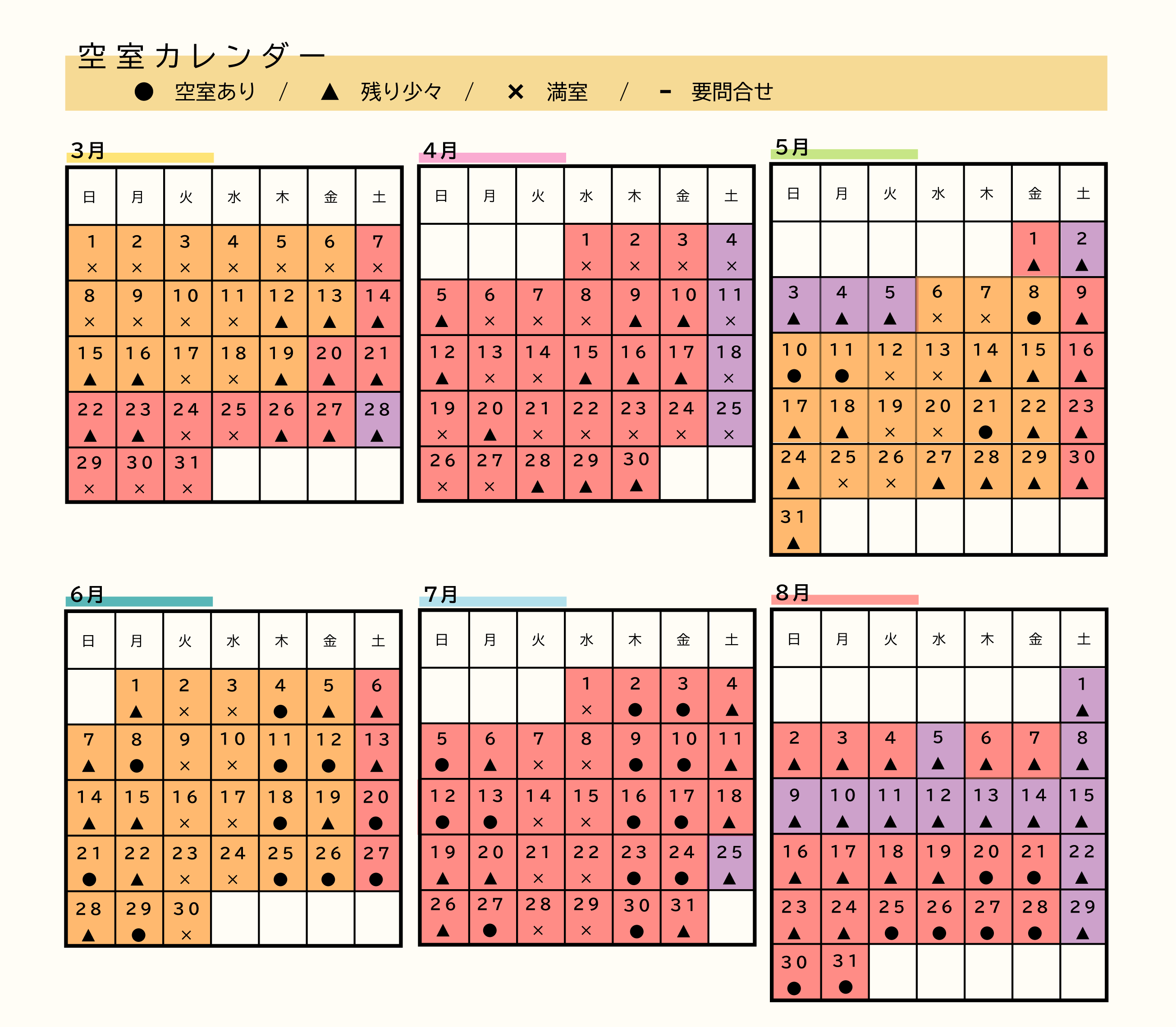 请注意,日历中的价格分类和金额可能会根据情况和住宿方案而变化。